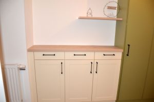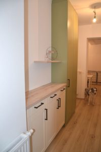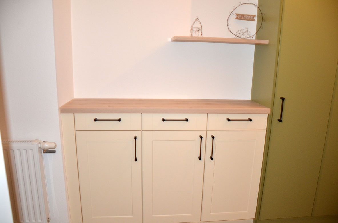 Speziell in Vorzimmern ist oft nur wenig Platz, aber viel zu verstauen. Und es ist der erste Eindruck, den man beim Betreten bekommt. Eine schlichte, elegante Lösung mit dezenten Landhausstil-Elementen war daher die erste Wahl für die Bewohnerin – und dem vierbeinigen Mitbewohner gefällt’s auch.